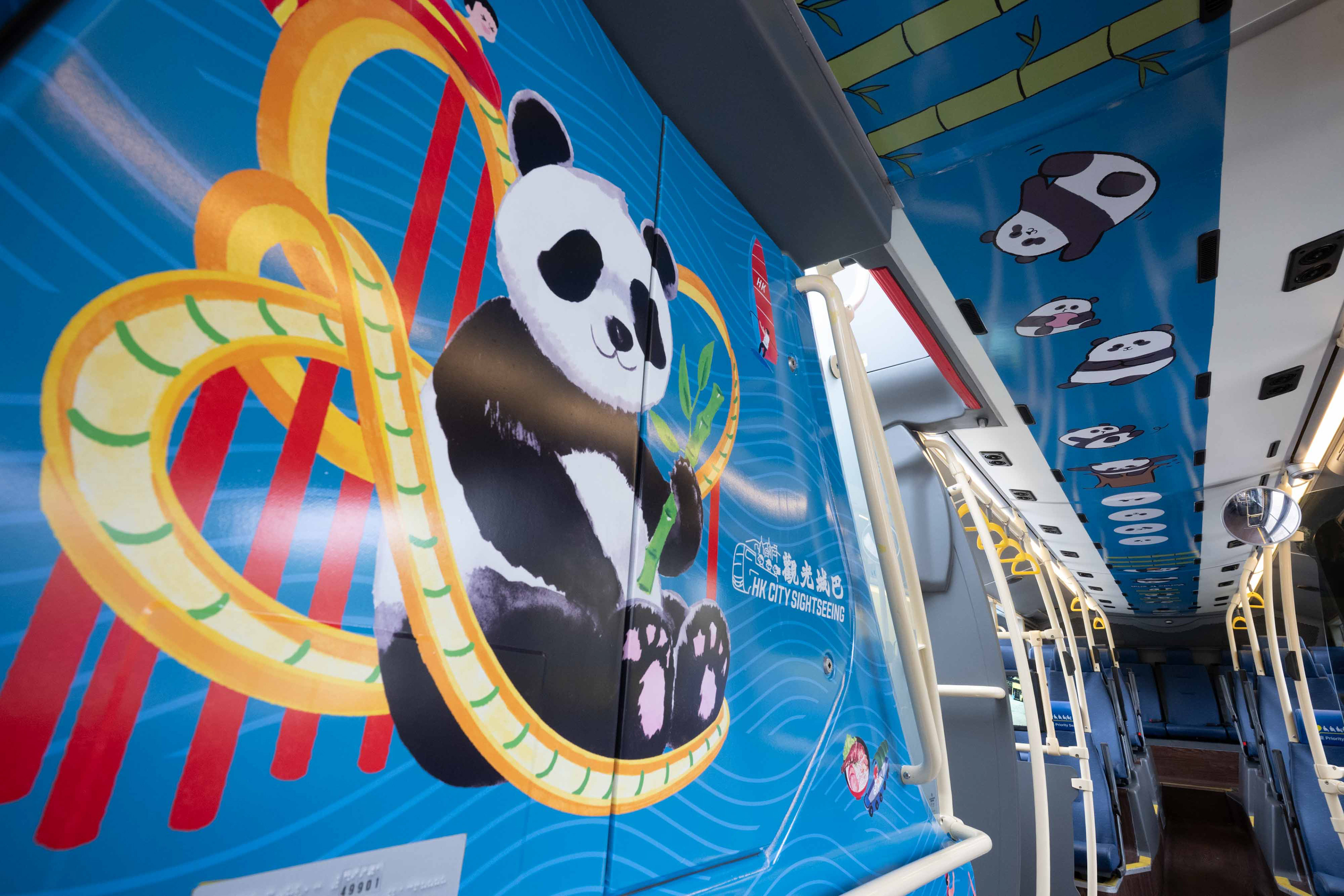 The themed bus “Panda Surfer” features Ocean Park's newest creation Intellectual Property (IP), “Panda Friends,” covering the interior and exterior from top to bottom and celebrating the birth of our two locally born pandas and adding a heartwarming touch to the city.